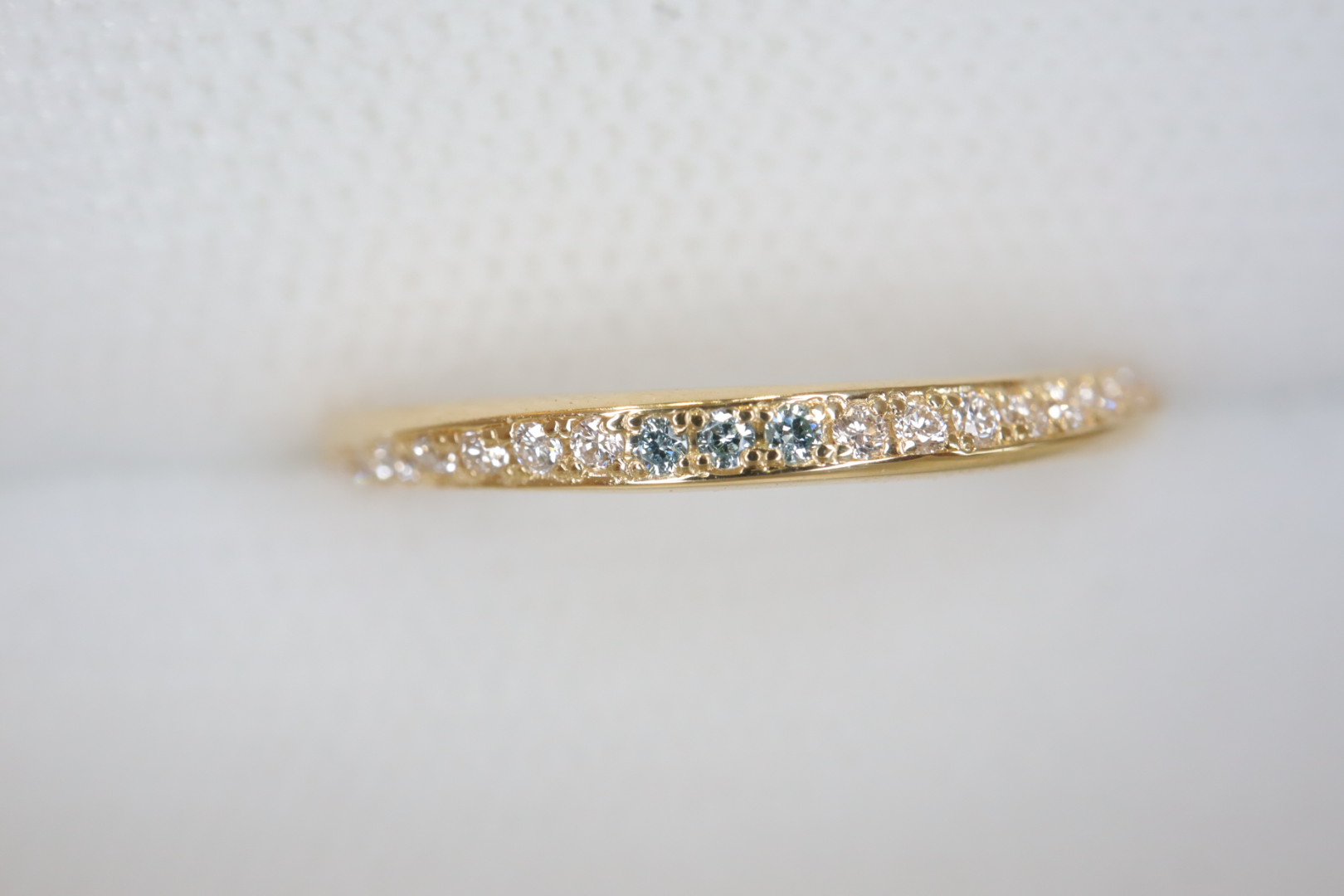 センター3石にはアイスブルーダイヤモンドを、