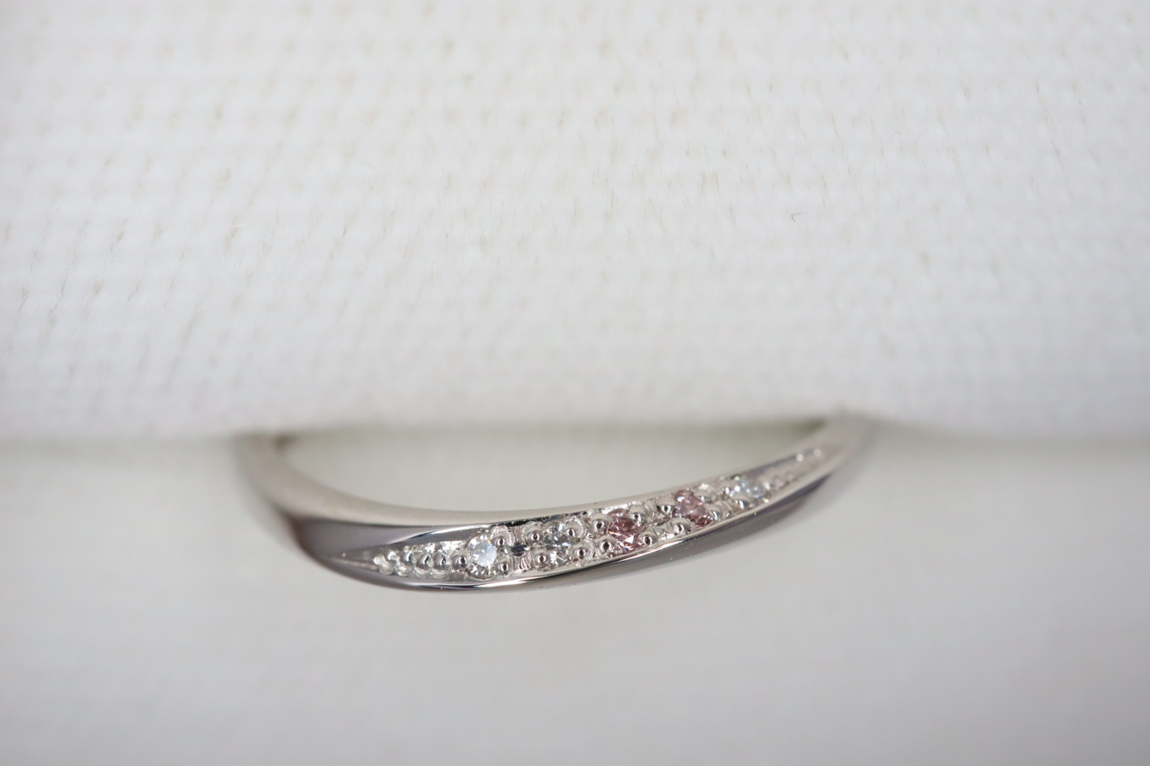 - 華奢なリングにピンクダイヤモンドをイン