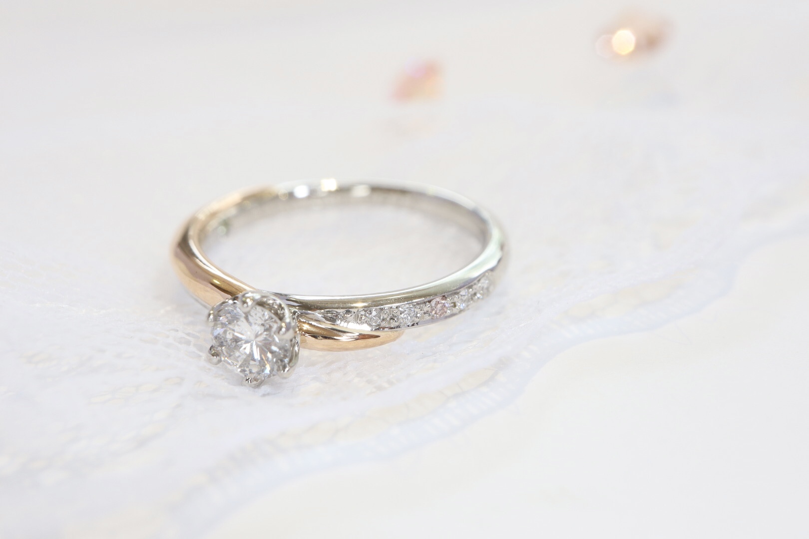 ピンクダイヤモンドをさりげなく1石