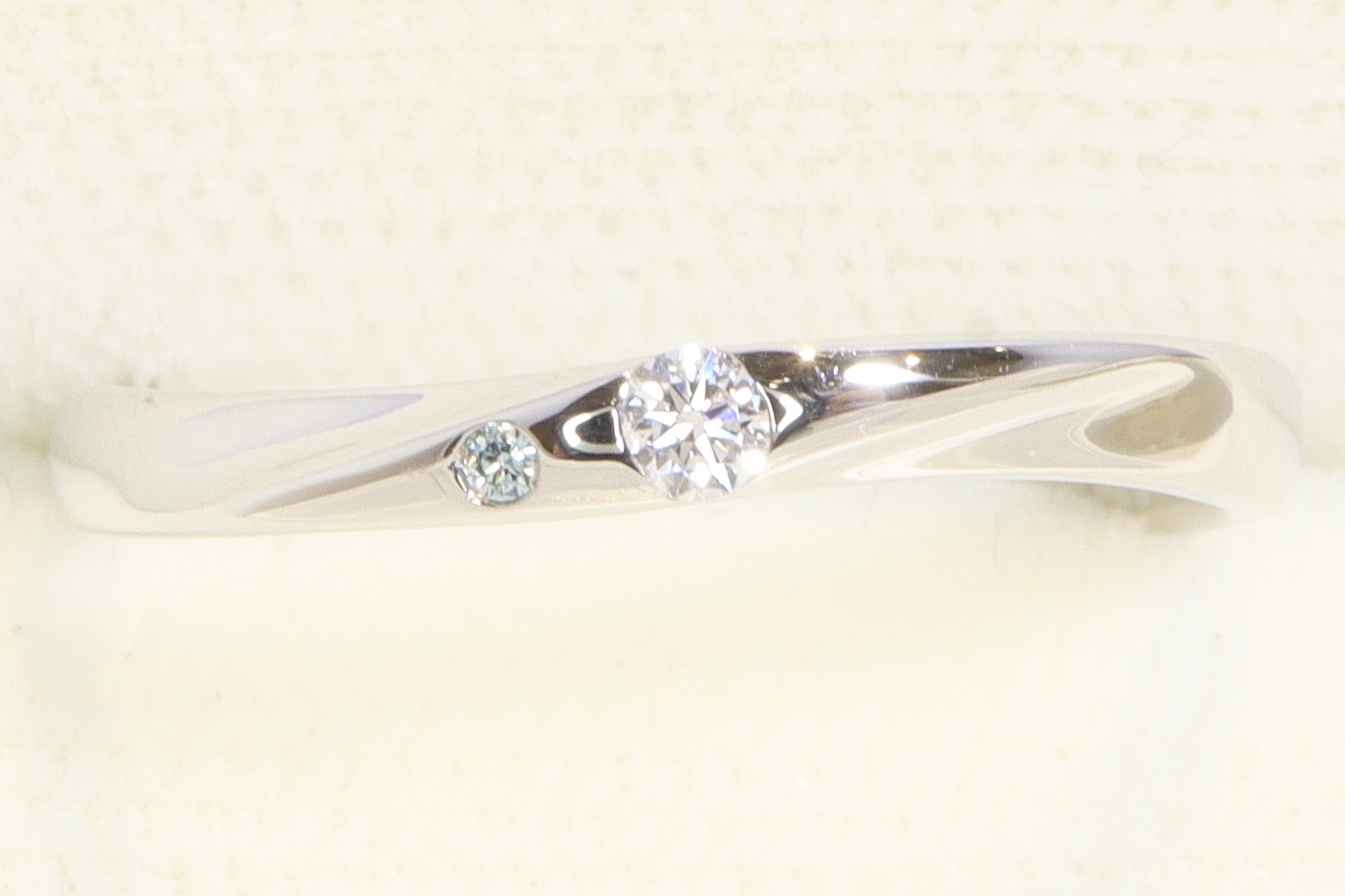 レディースリングと揃えてアイスブルーダイヤモンドを
