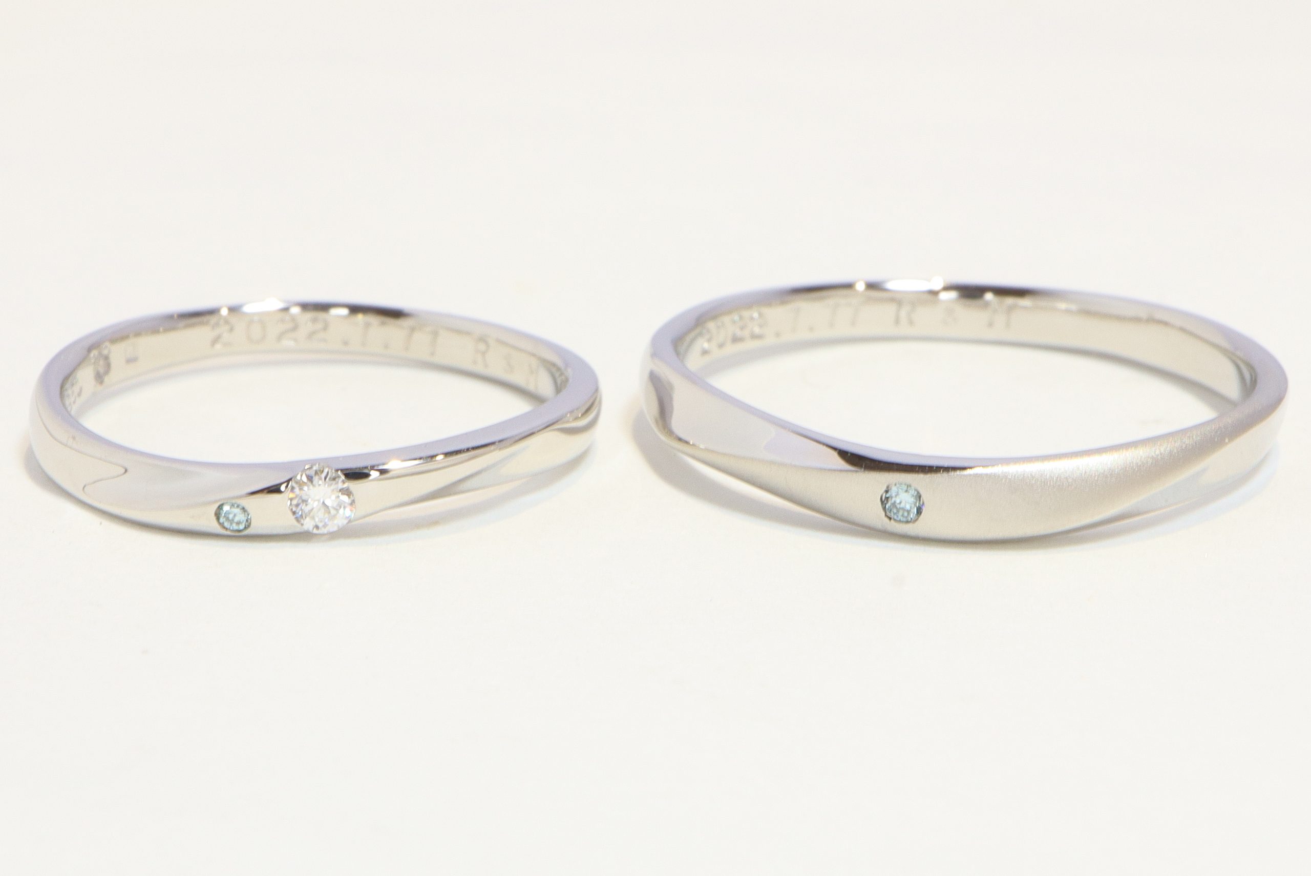 - 【ツィンズダイヤモンド+アイスブルーダイヤモンド】結婚指輪アレンジ