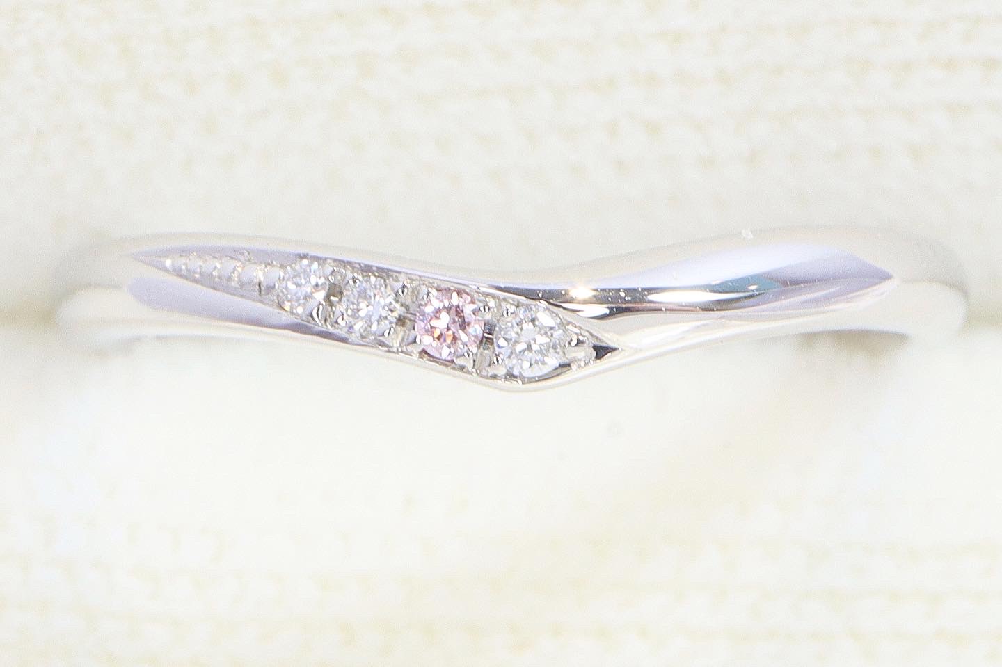 左から3石目にピンクダイヤモンドを1石