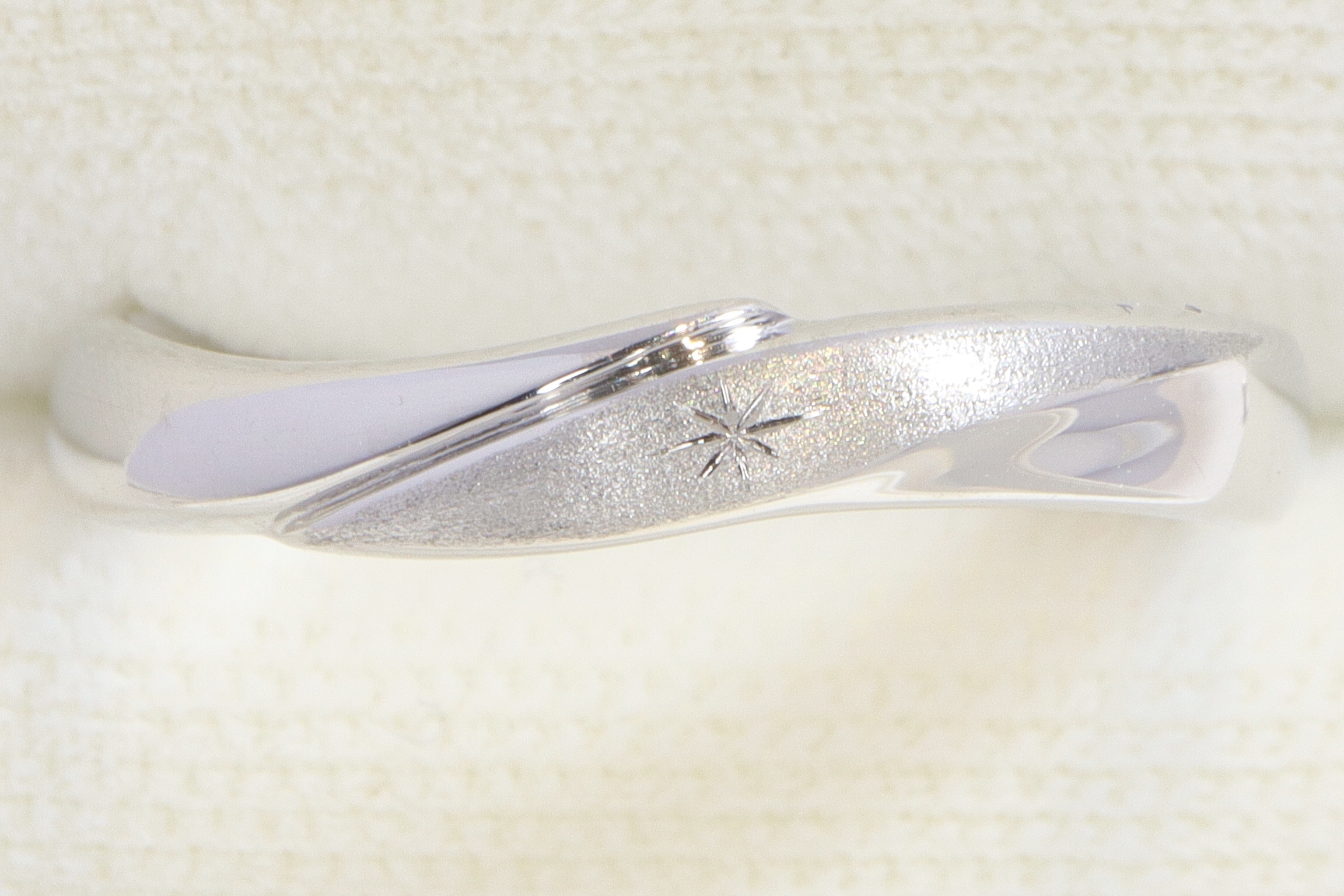 婚約指輪とぴったりと重なるストレートフォルム