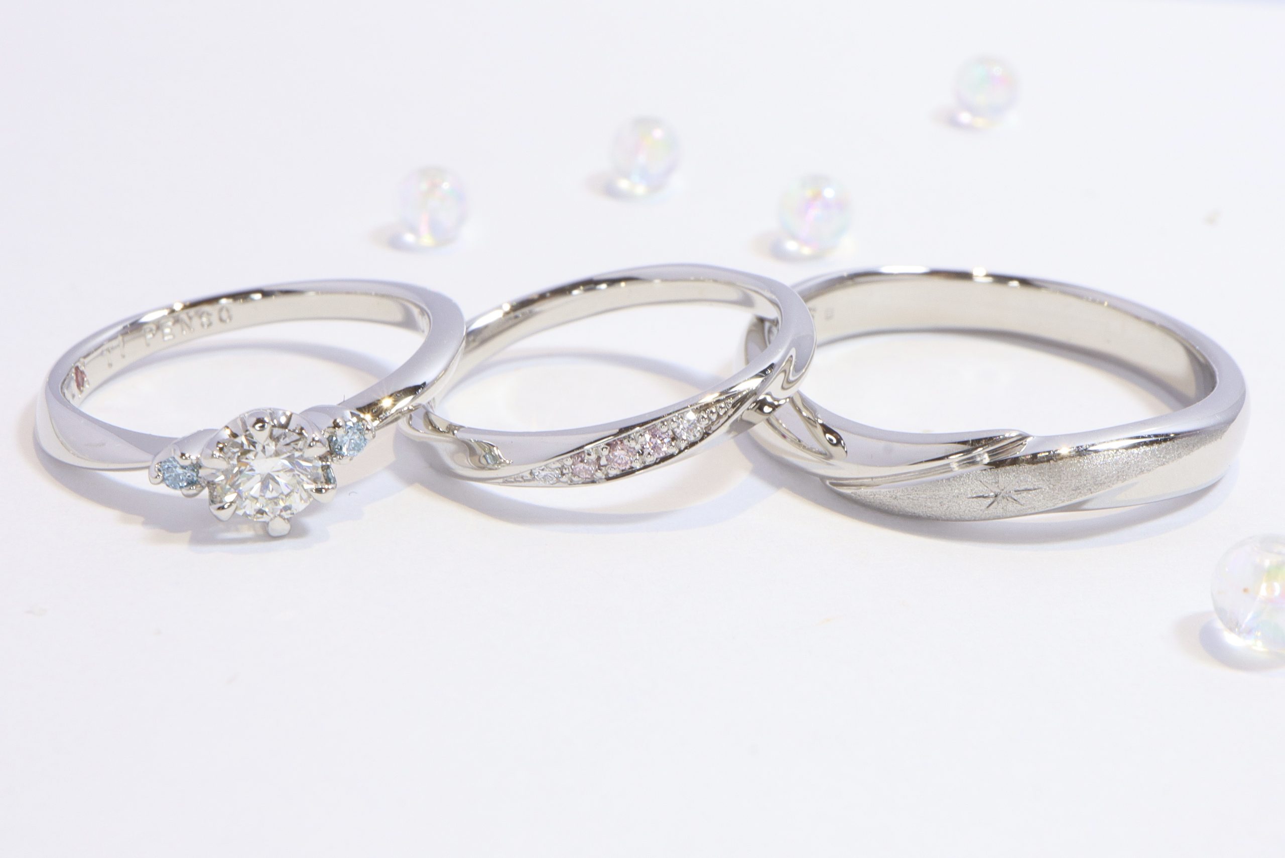 天然物のピンクダイヤモンドを3石セッティングして