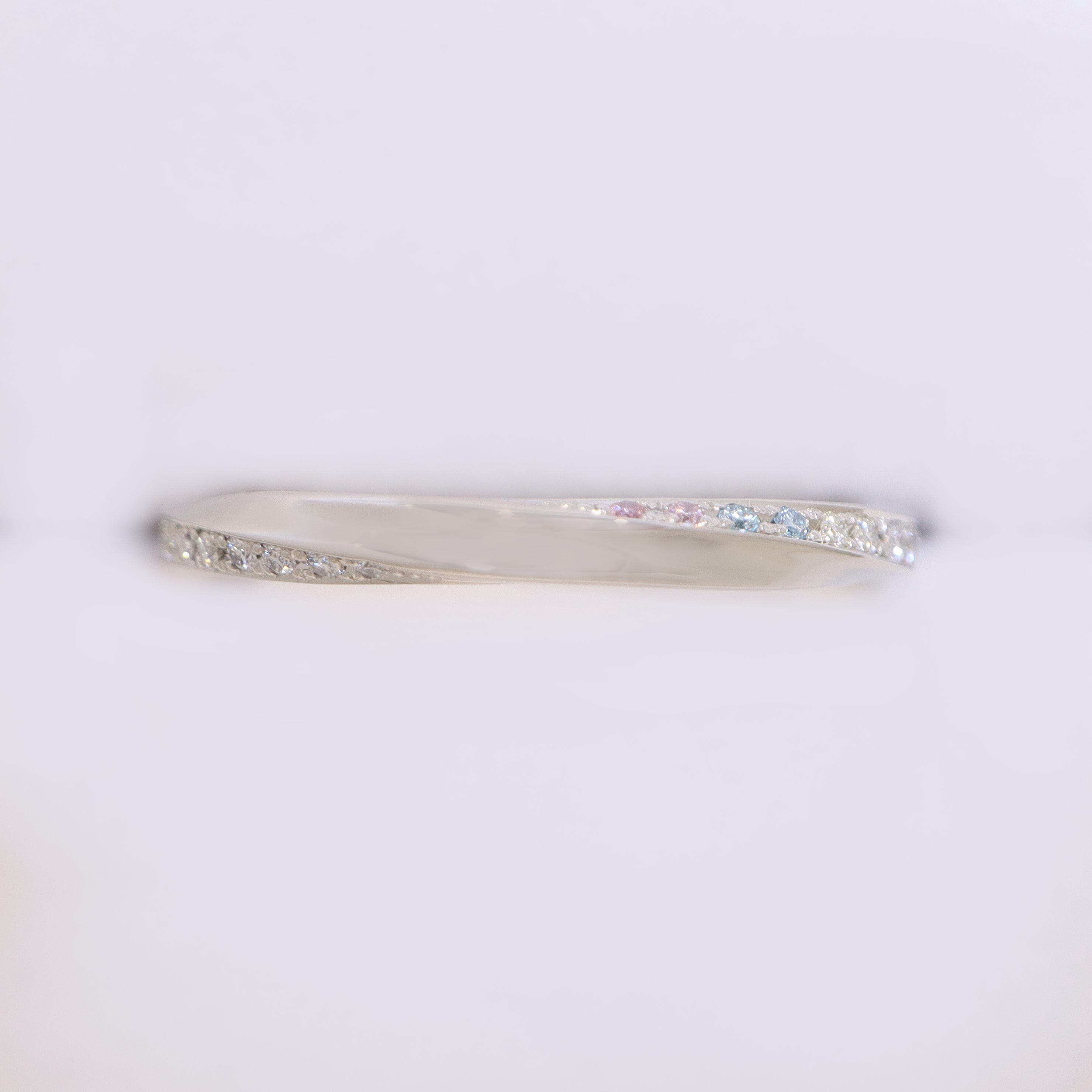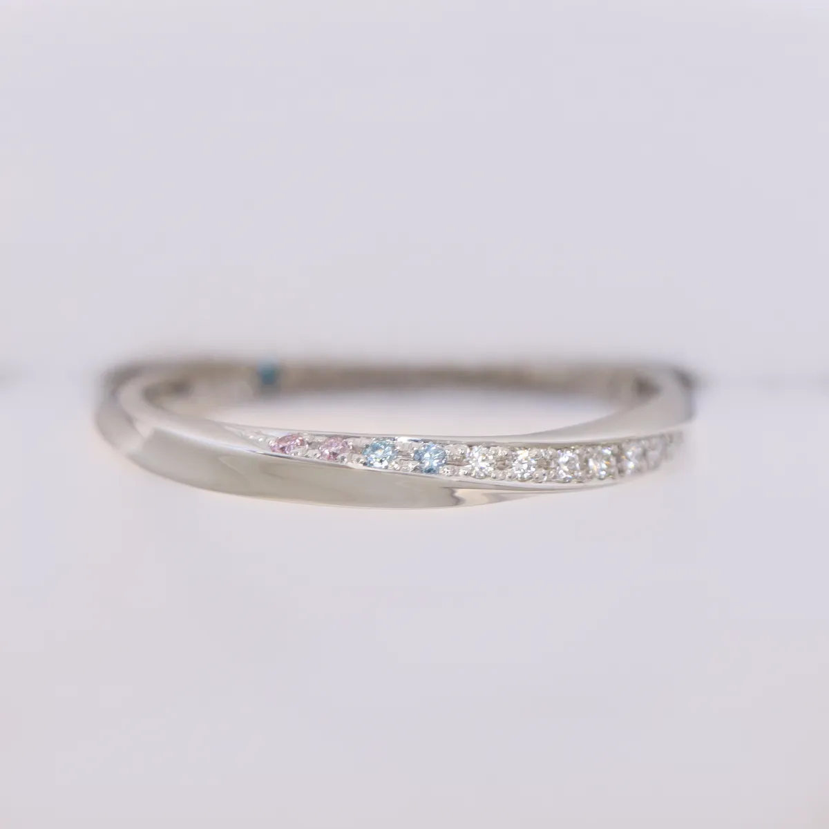 ピンクダイヤが2石、ブルーダイヤも2石、