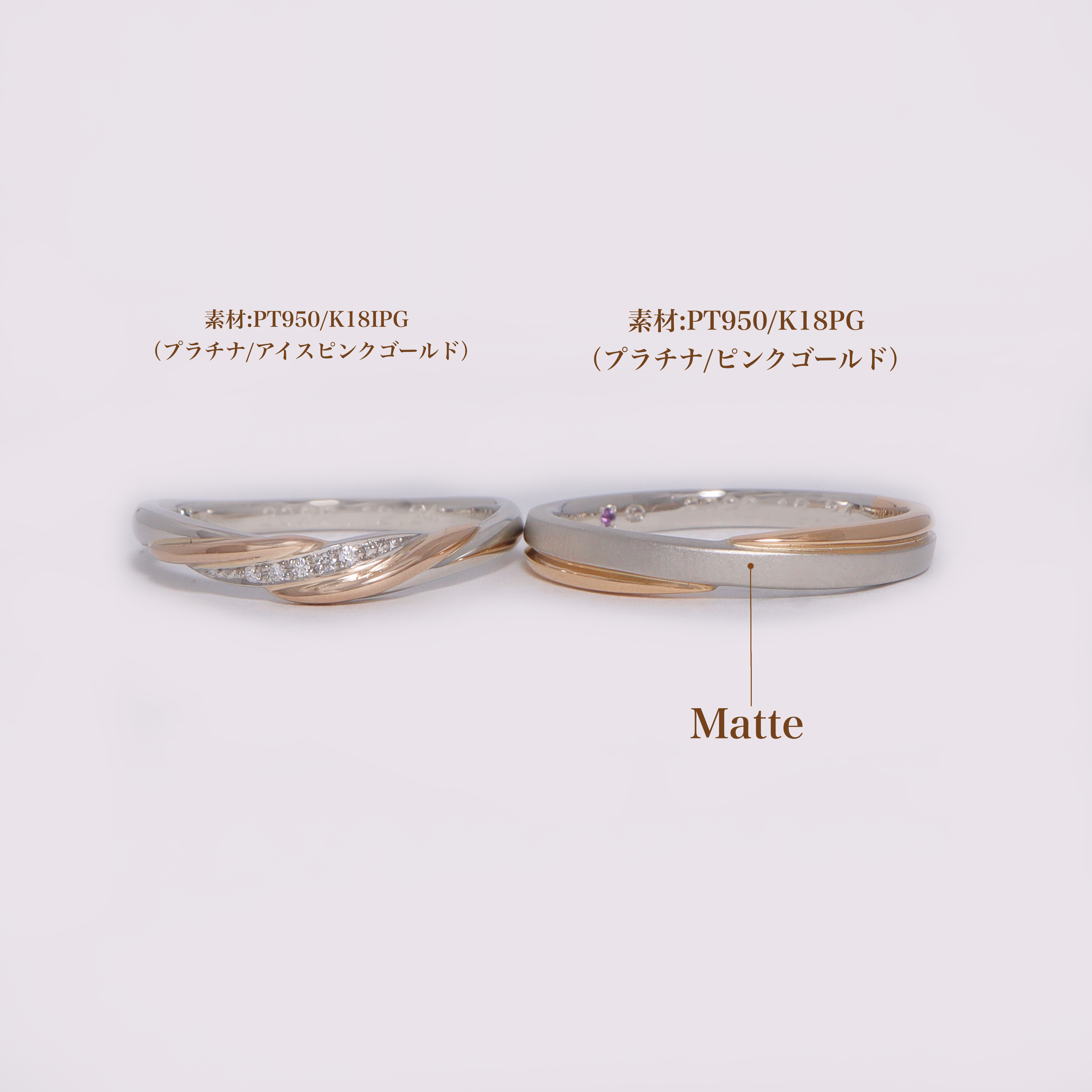 プラチナとピンクゴールドの組み合わせで