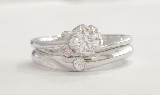お二人様の結婚指輪を重ねると、ハートになる遊び心のあるデザイン♡