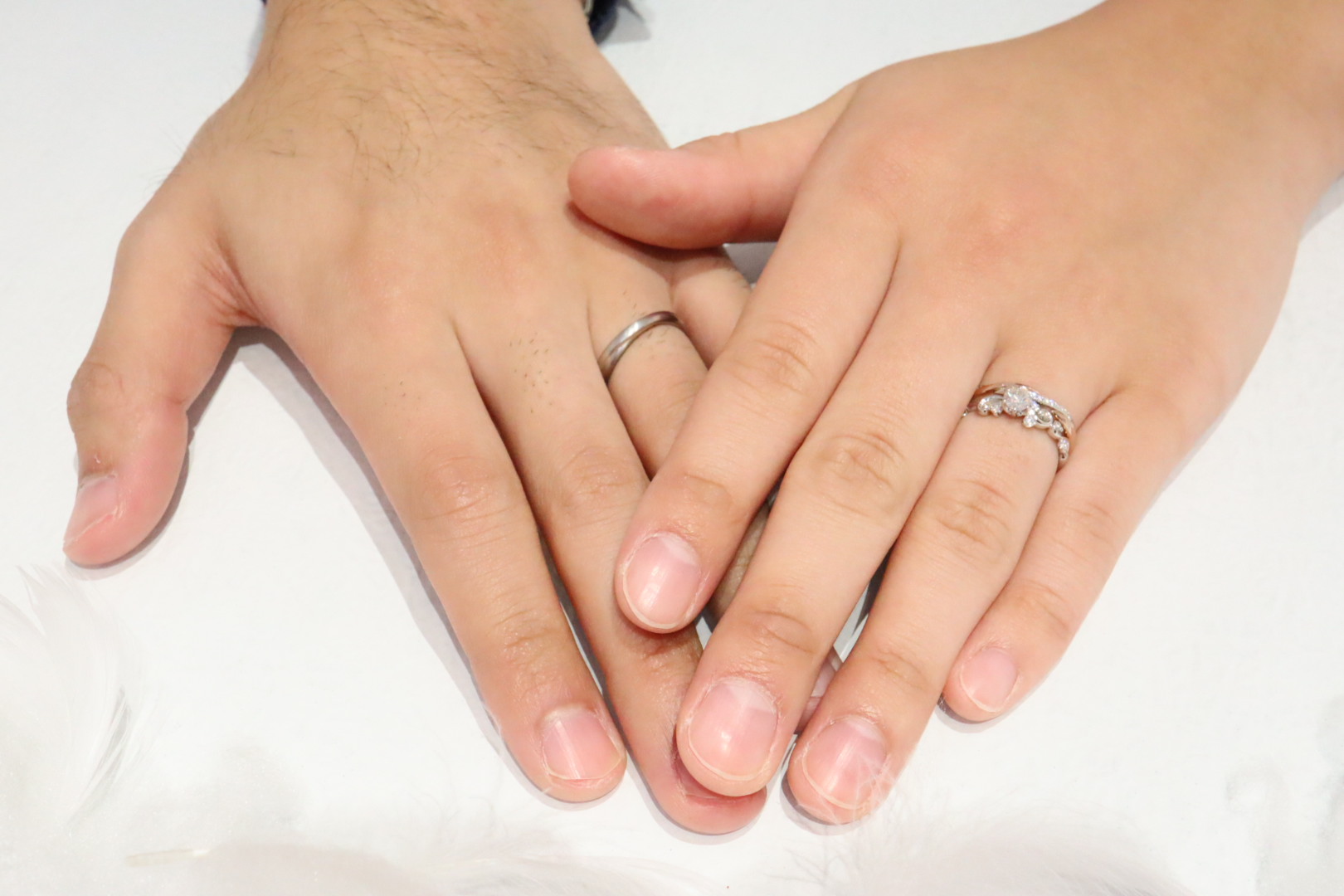 プラチナのエンゲージを重ね着けで華やかに***