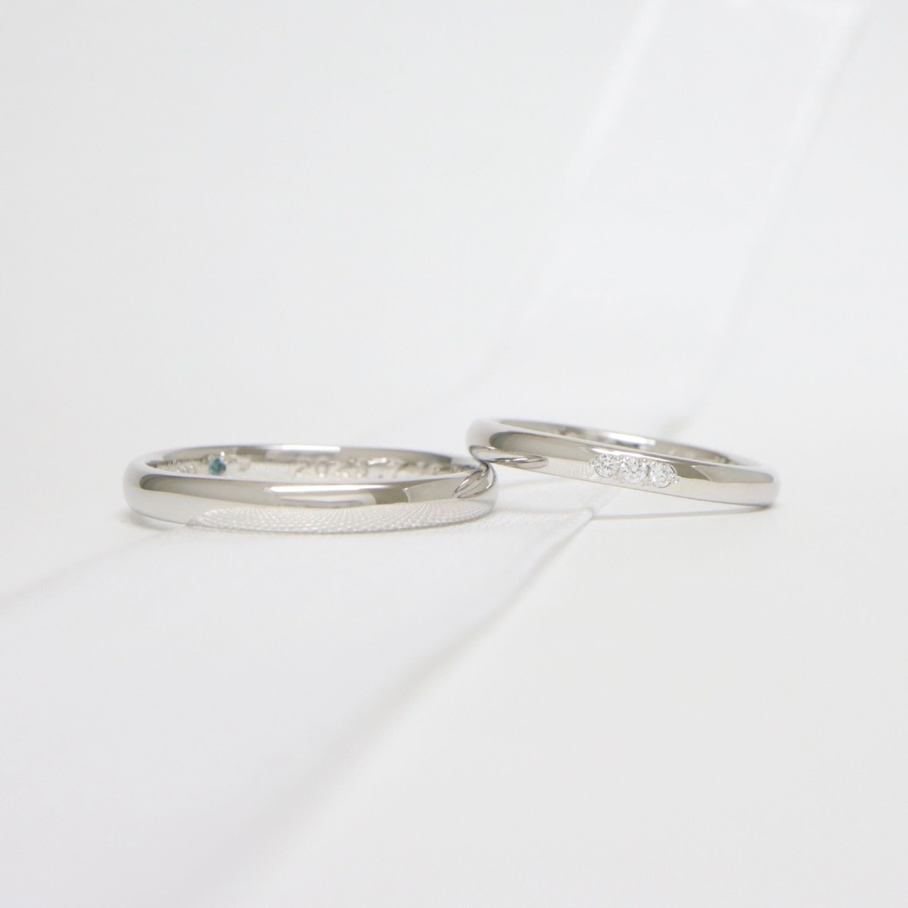 指輪の内側にブルーダイヤモンドを