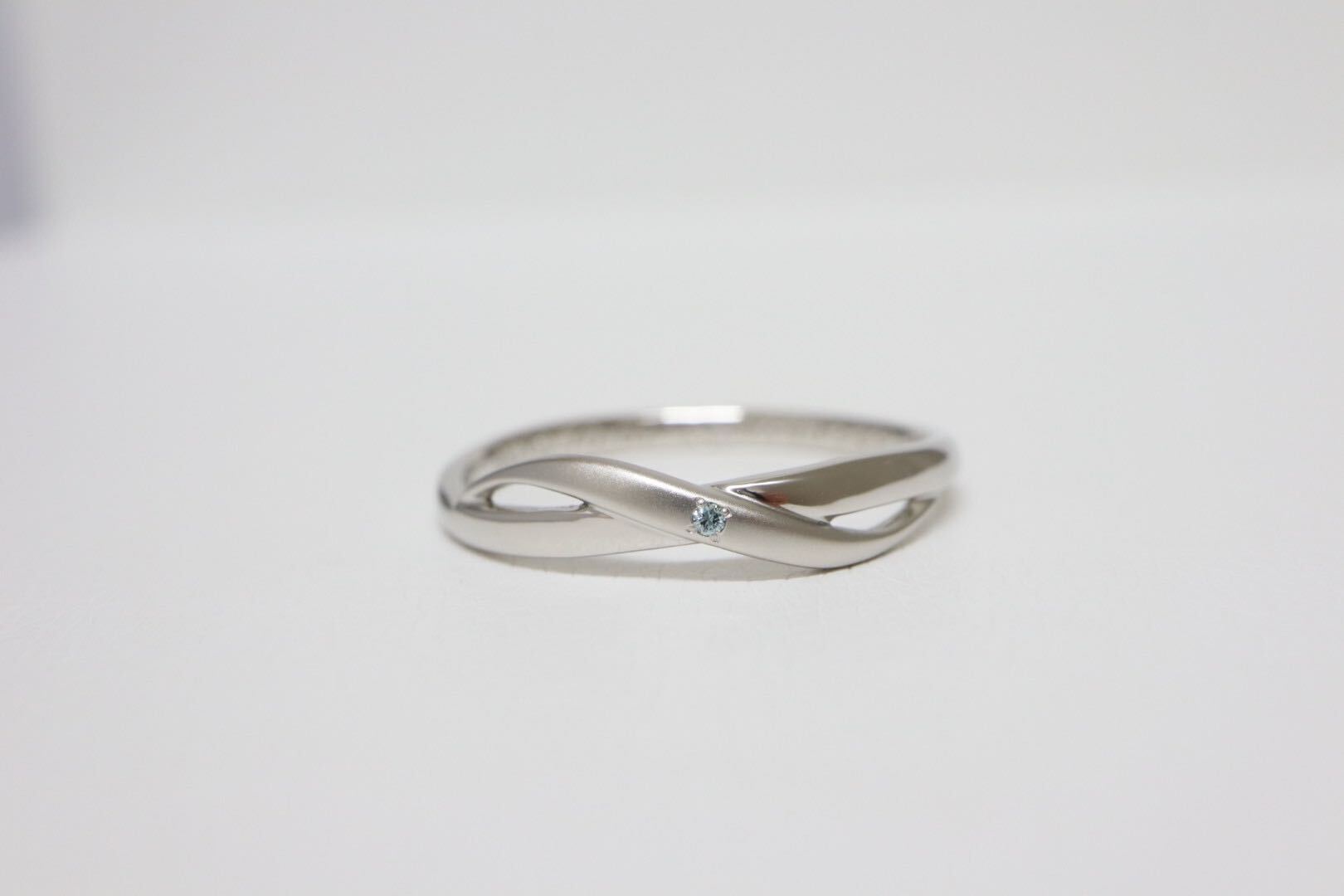 女性様は指輪の真ん中にアイスブルーダイヤモンドをアレンジ。