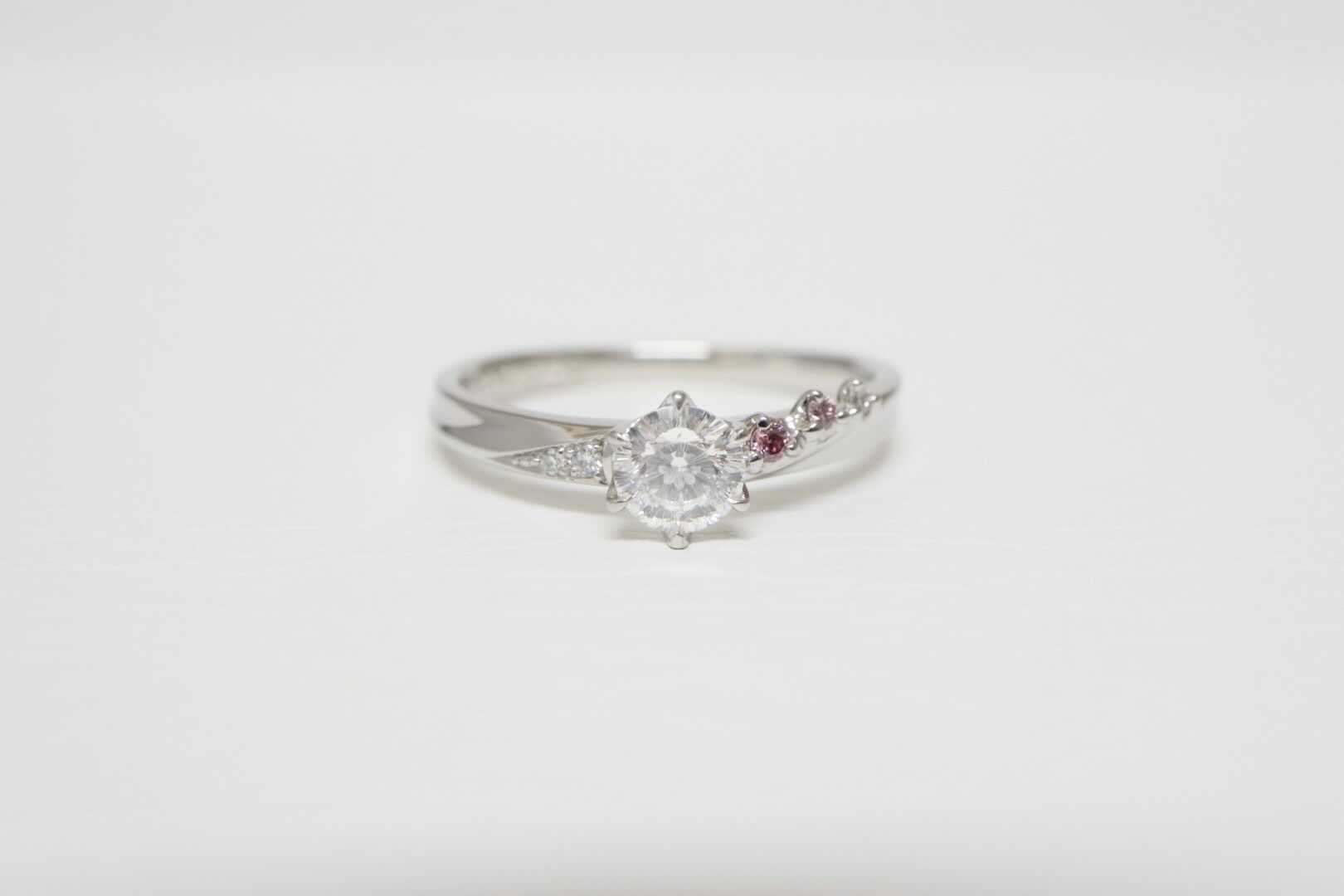 中指側のメレダイヤモンドをピンクダイヤモンドで