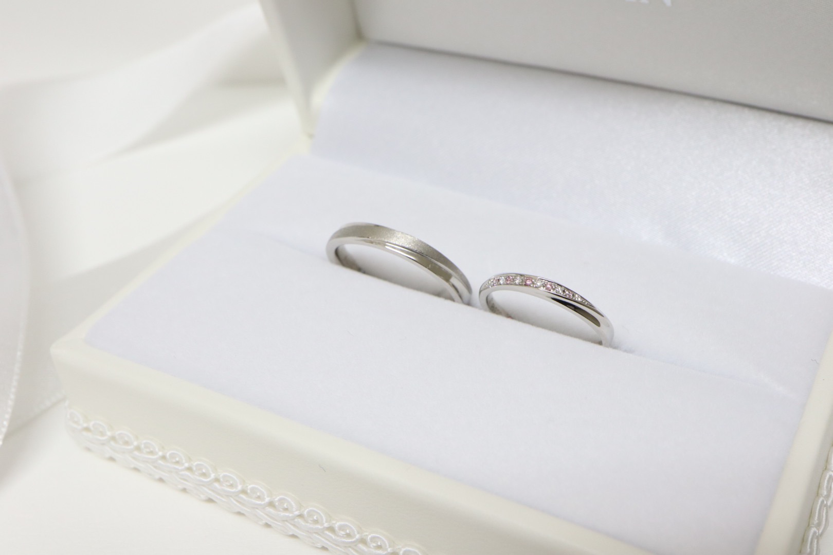 ダイヤモンドなしの結婚指輪はマット加工が施されていた