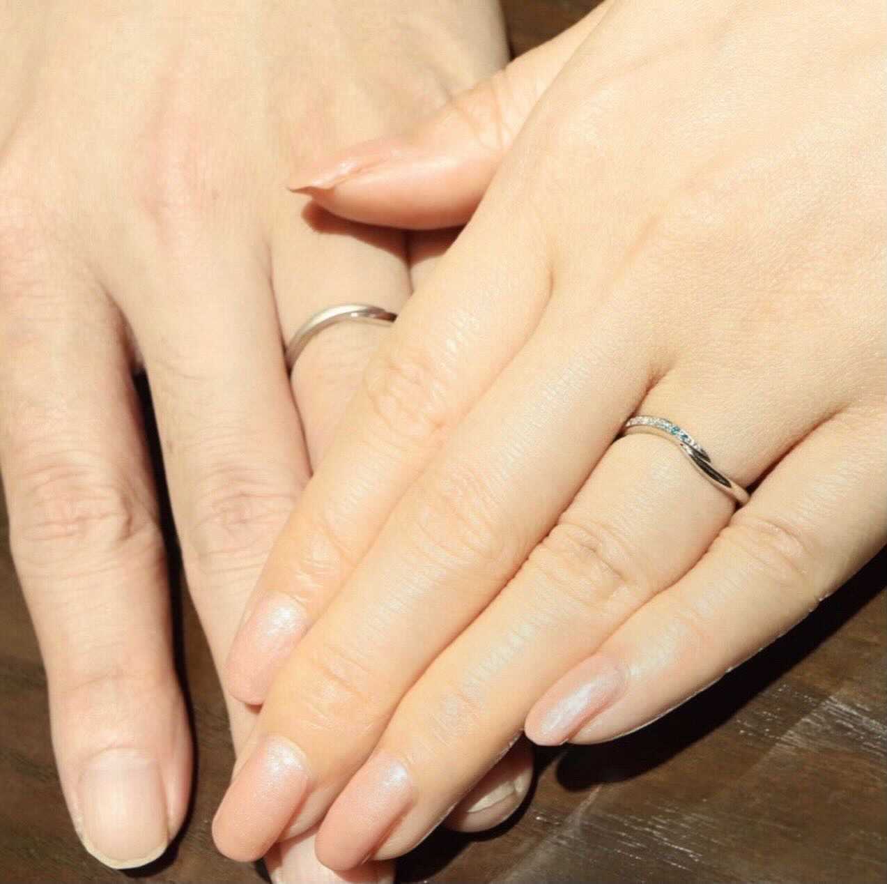 男性様は女性様の指輪のダイヤモンドの位置に
