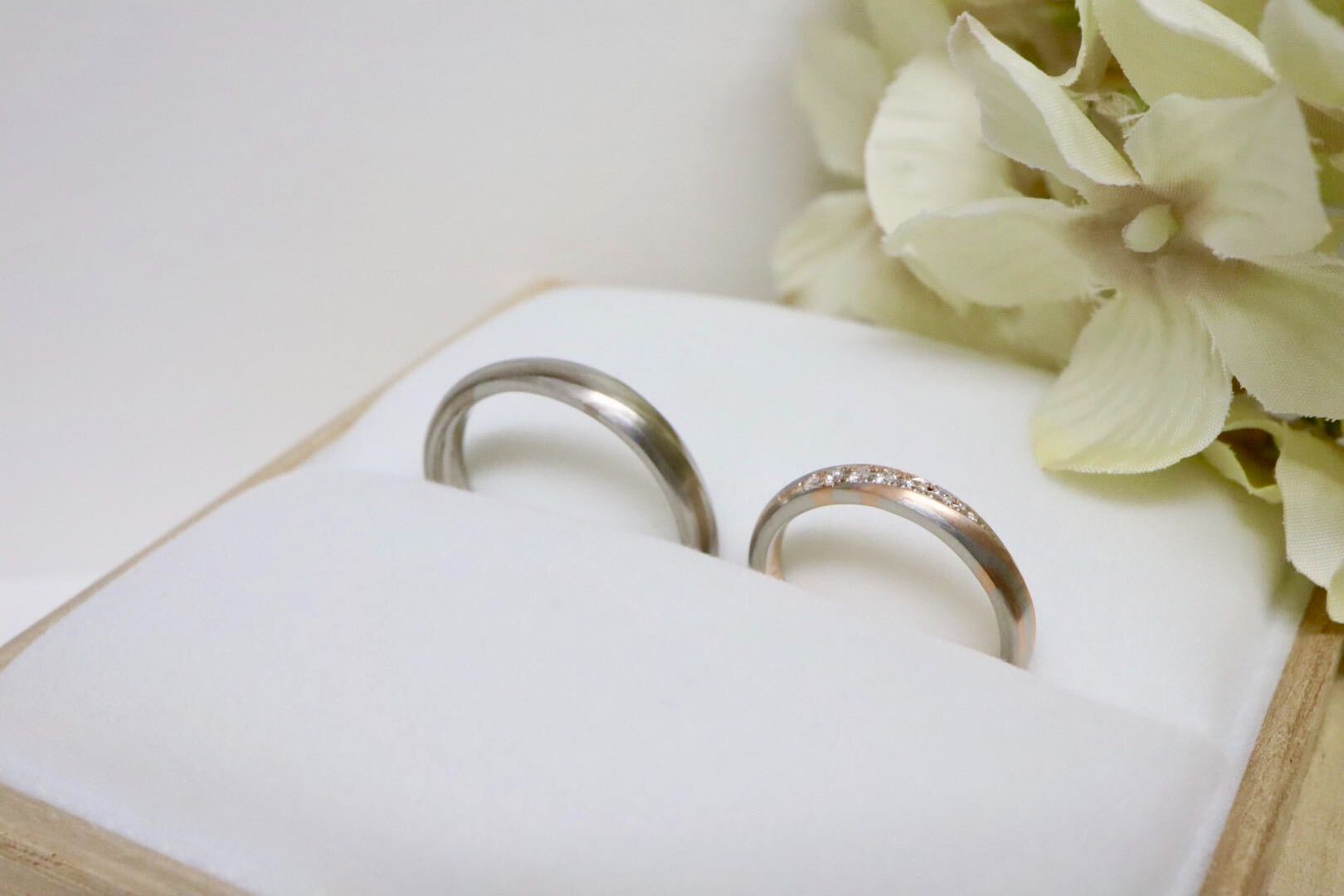女性の結婚指輪のダイヤモンドを1石から7石にアレンジ⋆。˚✩