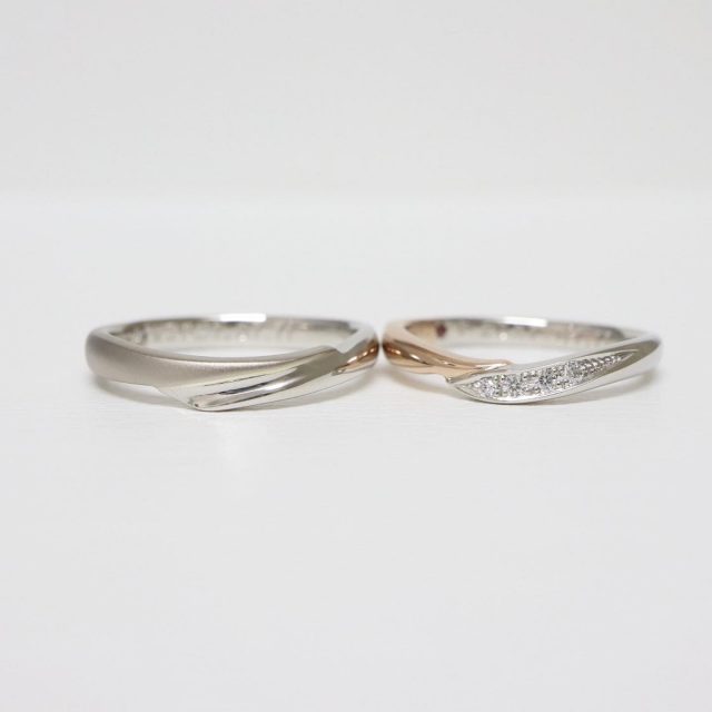 おふたりが選んだ結婚指輪は2つの素材を使用したコンビタイプ。