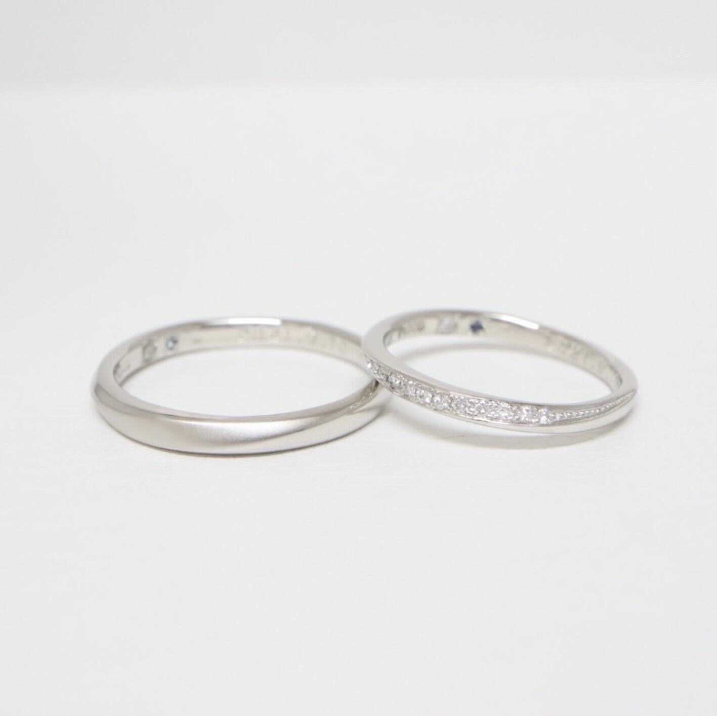 女性様はダイヤモンドを25石から15石に減らし、プラチナビーズを増やしたアレンジ 。