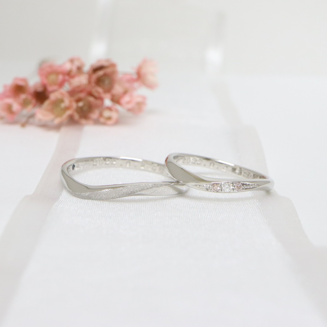 ホワイトダイヤモンドを挟むように