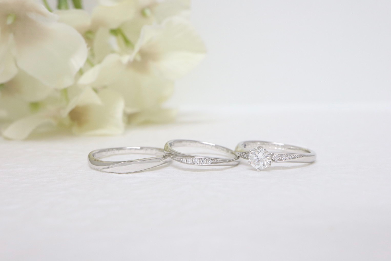 ウェーブラインの婚約指輪と結婚指輪 ✧︎