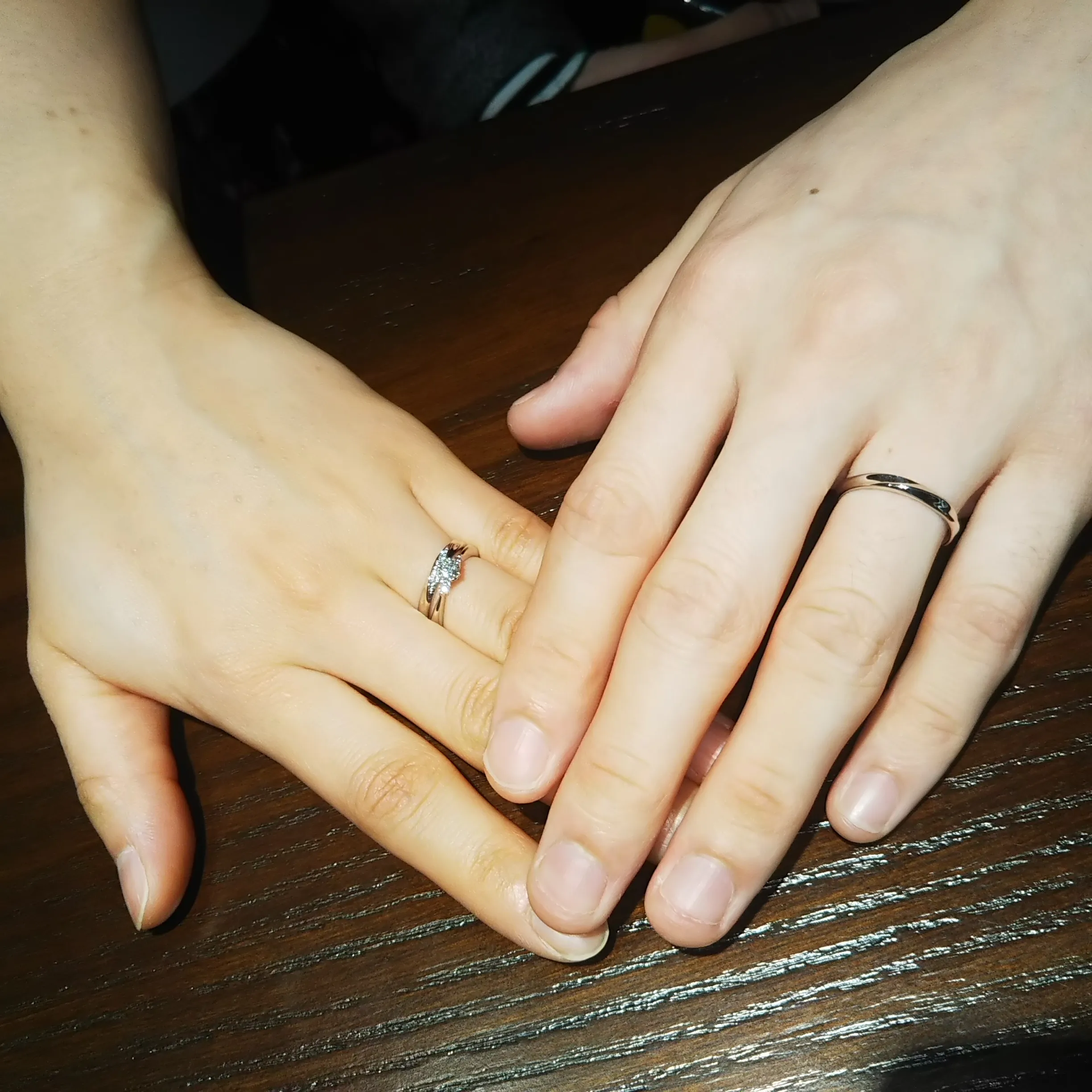 特にピンクダイヤがお気に入りで、婚約・結婚指輪両方に入れてもらいました♪