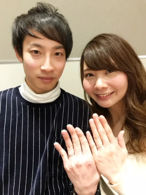 2人共こういったお店や指輪に疎くなんとなくお店に行って見て決めようという感じで立ち寄りましたが、お互い納得のいく指輪に出会えました♪何もわからない私達に親身になって相談にのって頂き大変参考になりました!