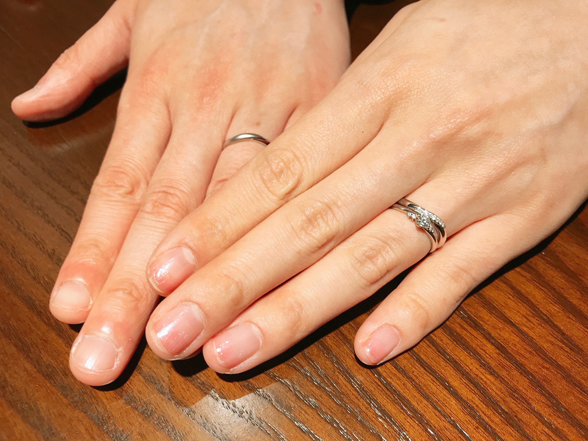 元々結婚指輪だけで考えていましたが、レガンさんのセットリングに惹かれ購入させて頂きました。