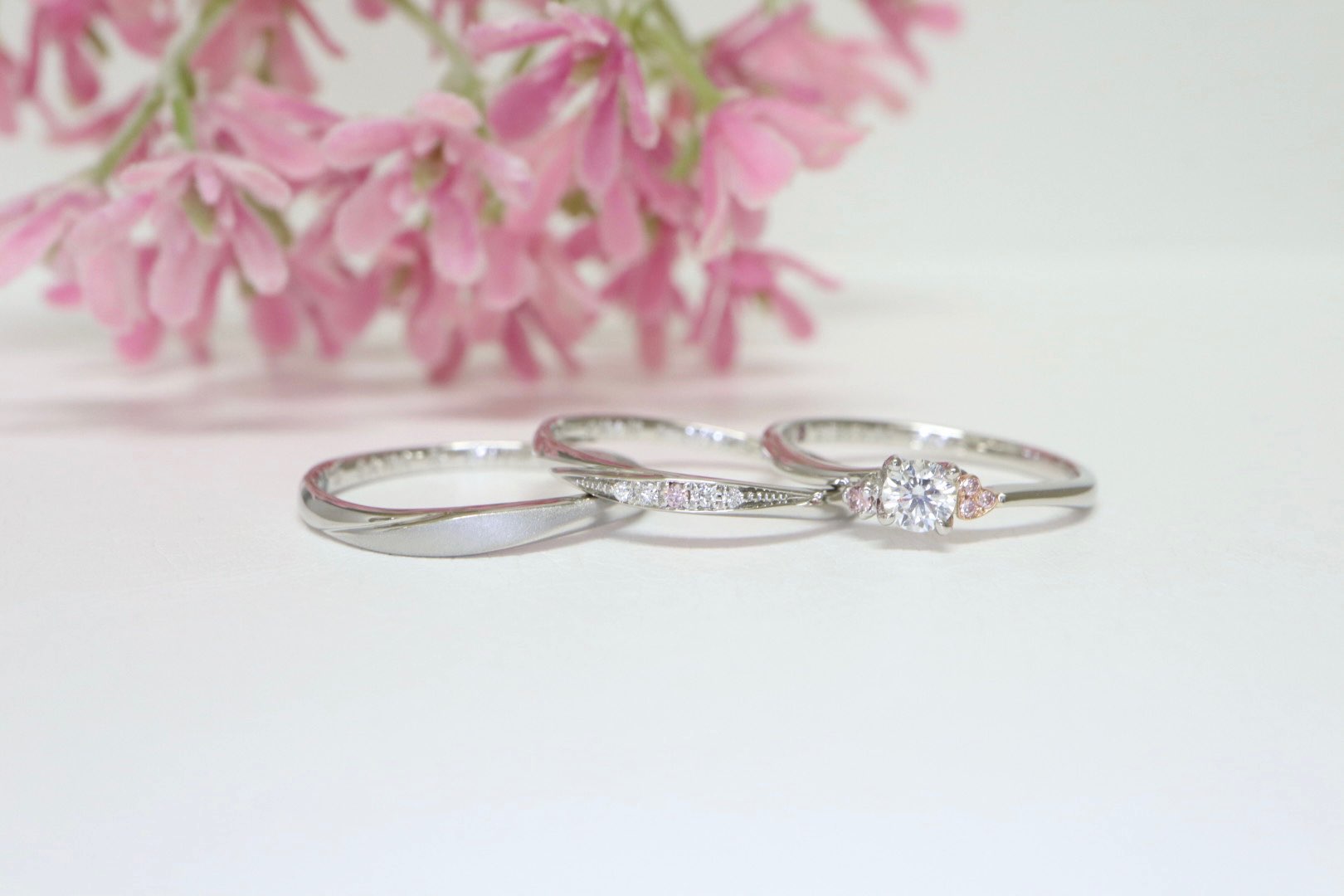 婚約指輪と結婚指輪の両方ともピンクダイヤ入りのお仕立てになりました♪