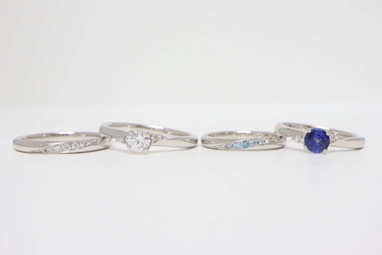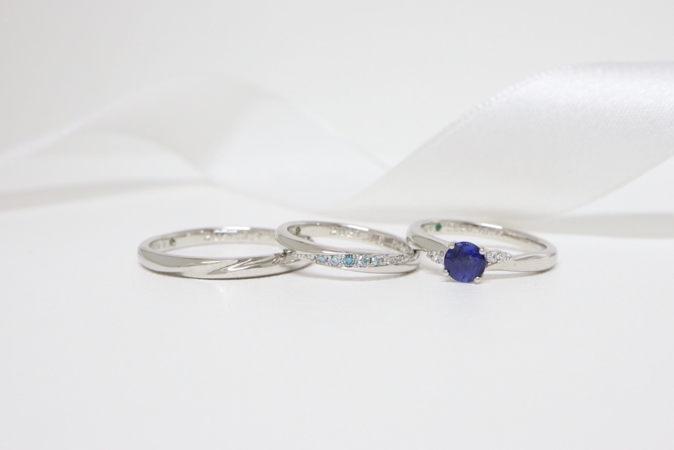 婚約指輪のセンターには、ご希望の通り青色の宝石