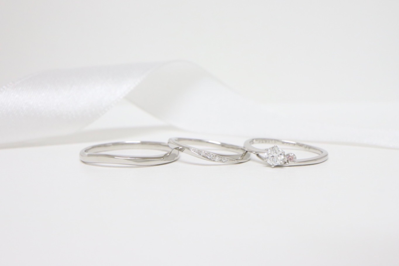 おふたり共にご希望のアレンジを施し、とてもおしゃれなご結婚指輪が出来上がりました。