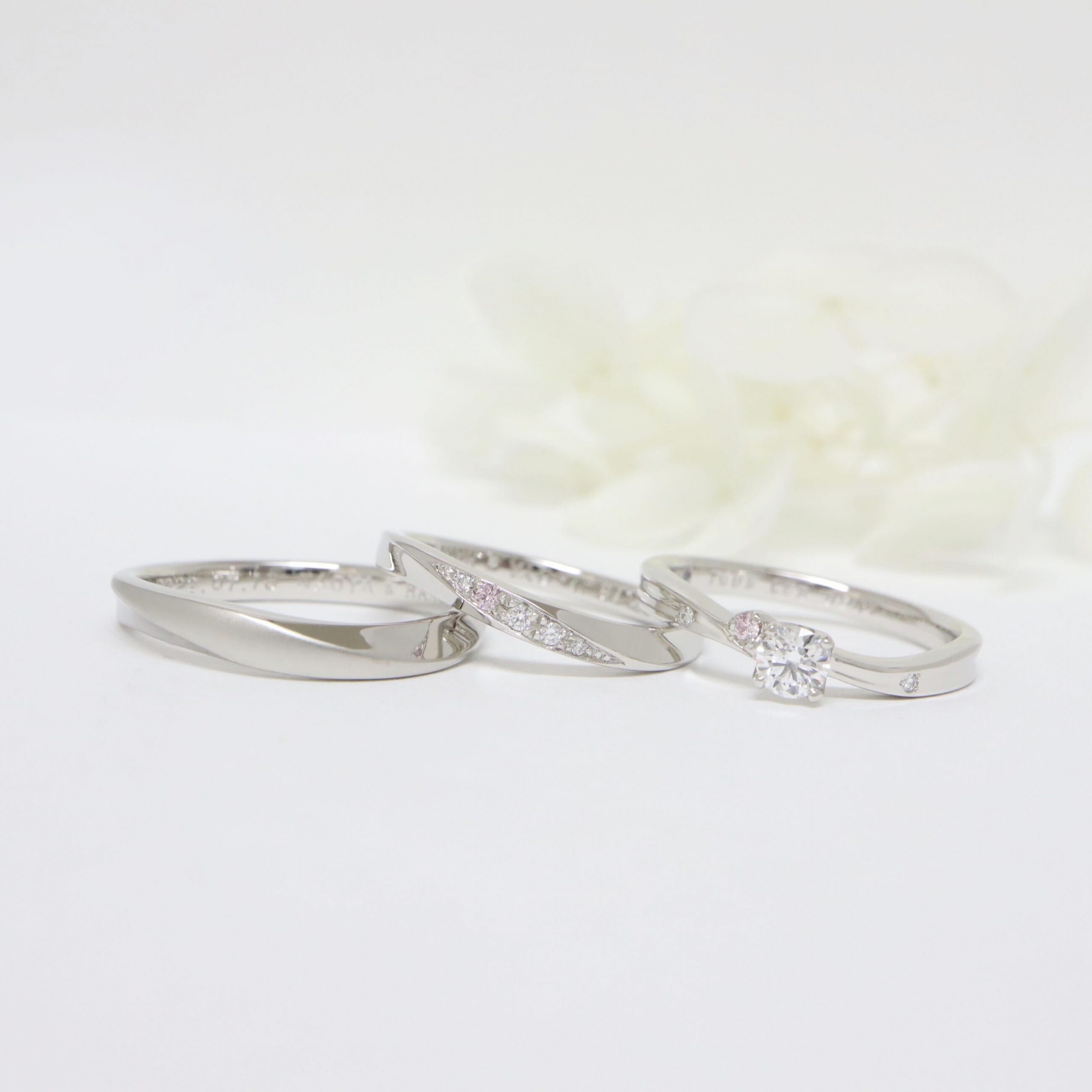 どちらもピンクダイヤをアクセントに。