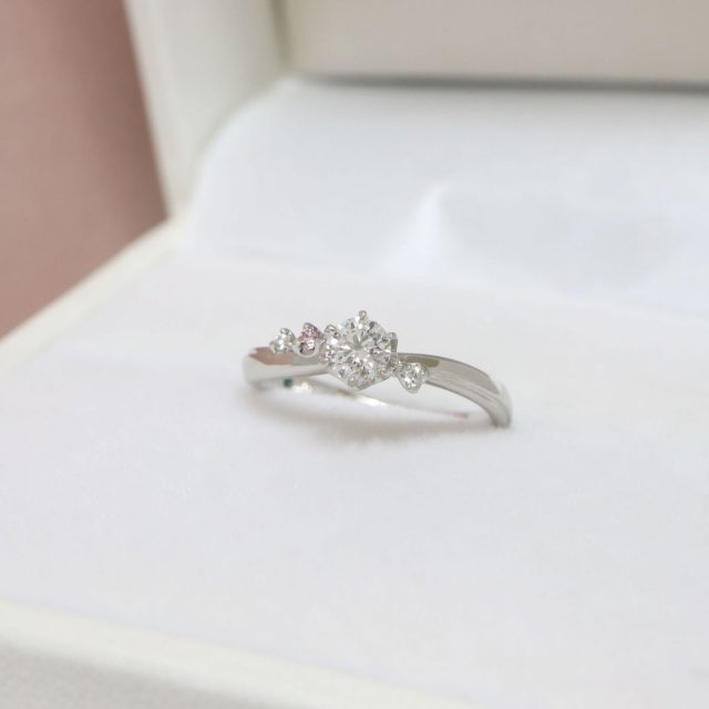 結婚指輪のダイヤモンドを5石のところを7石に増やしていただき加工も大変だったと思います。