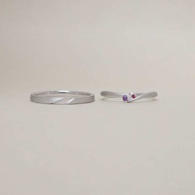 2人の誕生石のアメジストとルビーを表に入れたい希望、
