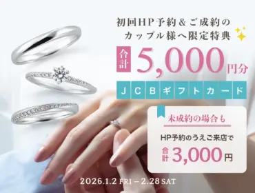 事前に来店予約のうえ、初めてご来店&ご成約頂いたカップル様に『JCBギフト券3,000円分』を贈呈い...