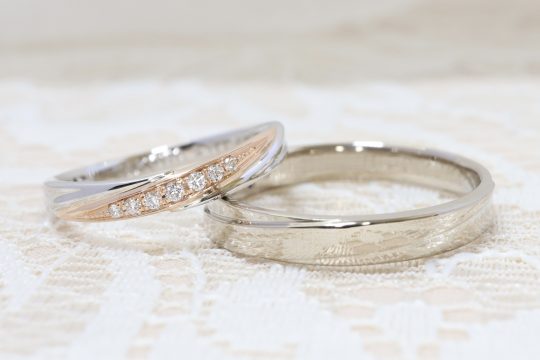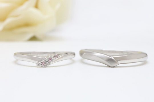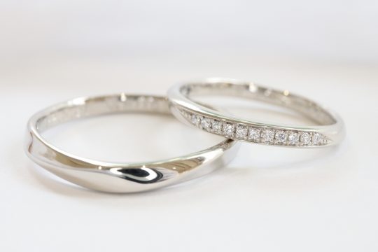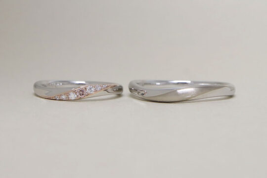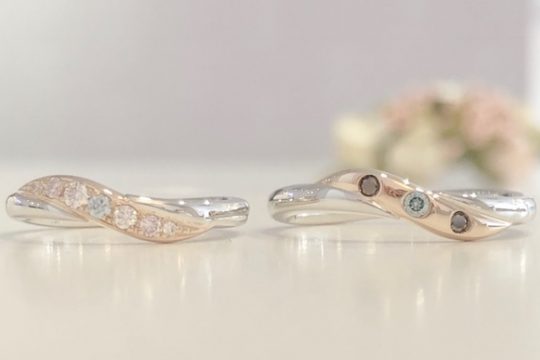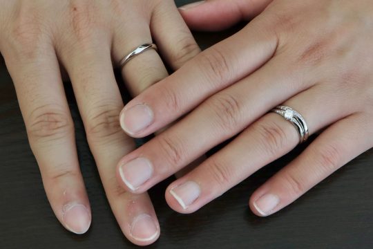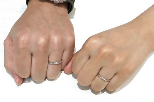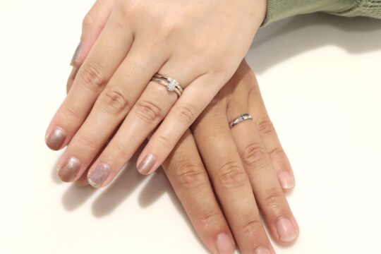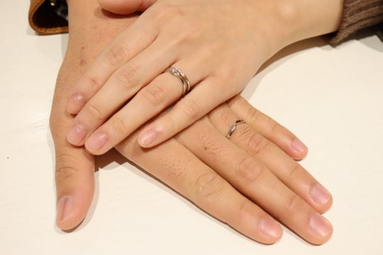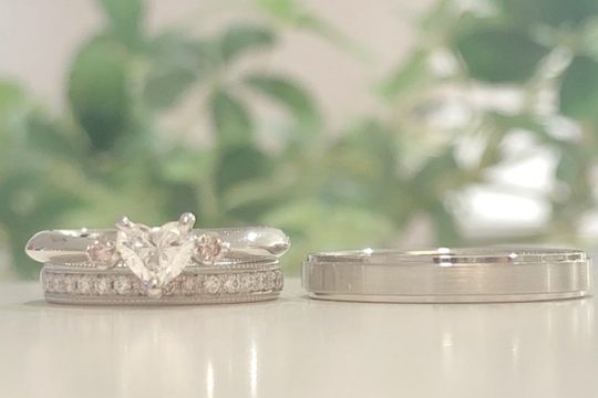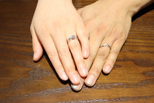 エンゲージリング、マリッジリングはともに重なるようにウェーブ系にしました。 特にエンゲージリングは...