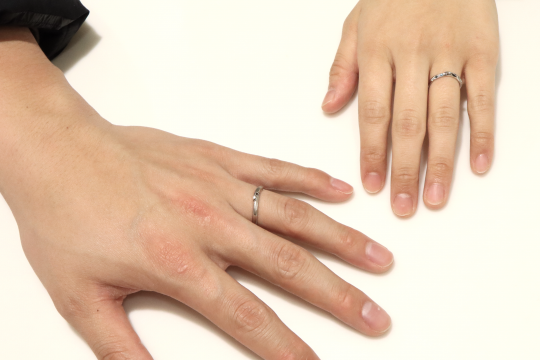 プラチナの結婚指輪を探していたところ、念のため行った金属アレルギー検査の結果 本命のプラチナがアレ...